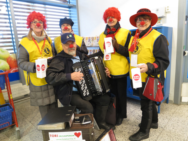 Nenäpäivänä 7.11.2014 Someron keskustassa suorittamamme lipaskeräys tuotti 1100 euroa, joka on viime vuotista keräystulosta parisataa euroa parempi, ja samalla koko A-piirin paras. Someron S-Marketissa kerääjiä ja lahjoittajia viihdytti haitarinsoitollaan ja laulullaan Rutakon Kojjootti, alias Raimo Rönkkö, joka sai seurakseen Outi Tuumisen (vas.), Kaisa Kotikoivun, Eila Niemisen ja Anja Kurvisen. Lämmin kiitos kaikille lahjoittajille!