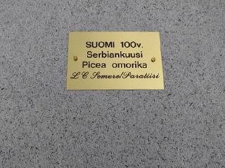 Kuva 3 Kuusen istutusajankohdasta kertova laatta on kiinnitetty Kivipalvelu Rantanen Oy:n lahjoittamaan kiveen. |