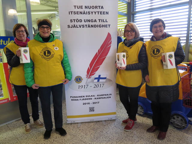 Kiirastorstaina 13.4.2017 järjestämämme Punainen Sulka -lipaskeräys tuotti erinomaisen tuloksen Somerolla. Keräyksen tuotto, lähes 600 euroa, varmisti sen, että olemme saavuttaneet klubillemme asetetun tavoitteen Suomen Lions-liiton valtakunnallisessa kampanjassa.